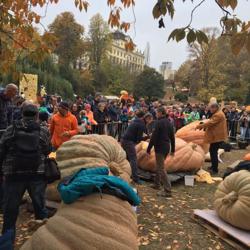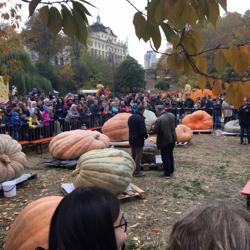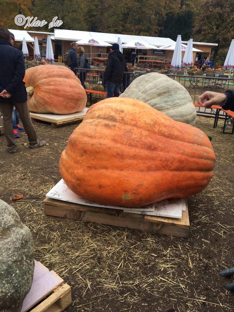 南瓜展的高潮自然是最后一天宰杀南瓜庆典Schlachtfest,今年所以得奖的大难过都被聚到一起,今年冠军🏆是瑞士重达943公斤的南瓜王,德国冠军是来自巴登符腾堡州的875公斤。我从南瓜王身上得了一大块回家。沾沾王气,😄。