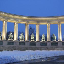 英雄广场和千年纪念碑(Heroes’ Square and the Millennium Monument)。千年纪念碑建于1896年,为了纪念马扎尔人(匈牙利的主体民族)在一千年前战胜其他势力,在中欧建立他们自己的国家。在广场周围还有艺术馆和美术博物馆。在美术博物馆中收藏了不少古埃及的艺术品。