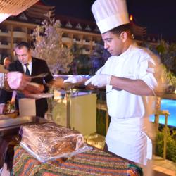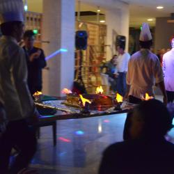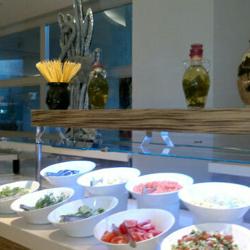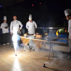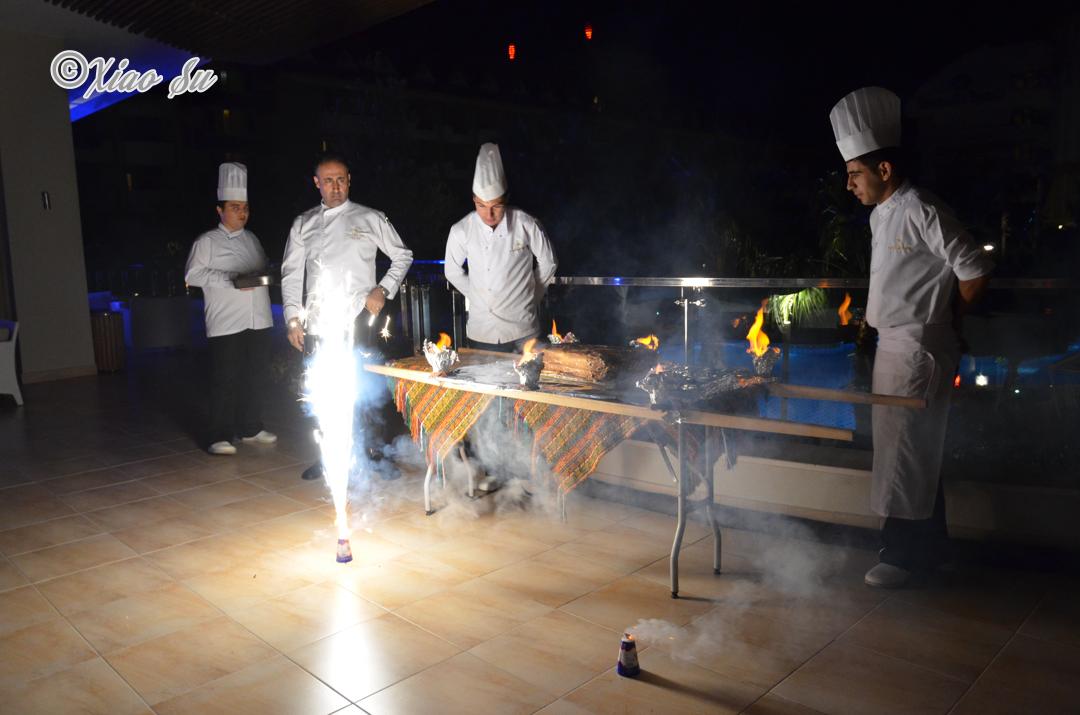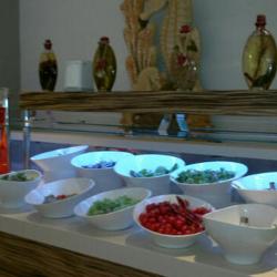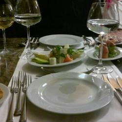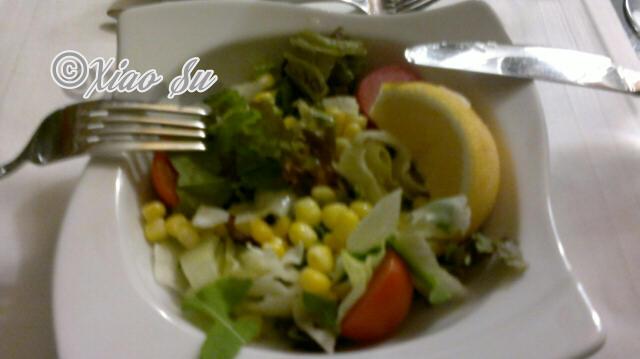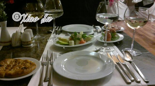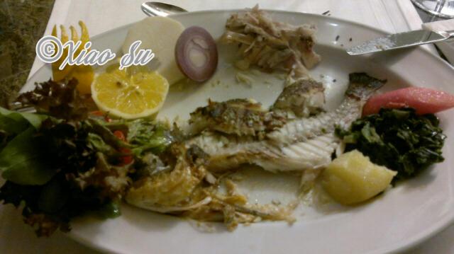 toole 6-gang- abendessen. kaltvorspeise, fischsuppe, warmvorspeise-garneleneintopf, mittelmeersalat, hauptspeise-goldbrasse und nachtisch-apfelkuchen mit espresso. 6道纲的正式晚餐,冷前餐: 鱼汤,热前餐: 大虾锅,接着是地中海沙拉, 主菜是煎金頭鯛,甜点是苹果蛋糕和意式浓咖啡。