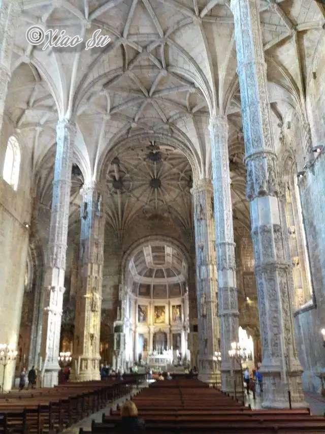 当当当-重头戏来了,Mosteiro dos Jeronimos这个修道院果然不负盛名。侧边的礼拜堂就那么精彩,葡萄牙后哥特式建筑独有的风格Manuelinik,来自于葡萄牙人对自己大航海时代的骄傲和财富记录,加上欧洲意外建筑风格的影响形成了特有的浮夸装饰。不过你在浮夸过后仔细欣赏会发现每一个细节都富裕变化,乍看风格雷同的柱子,窗框等等,其实每个都不同,每个装饰花纹都是独一的,如果这一切还有当年设计师的文档保留,那么这份工作还有工人的执行都是让人叹为观止的