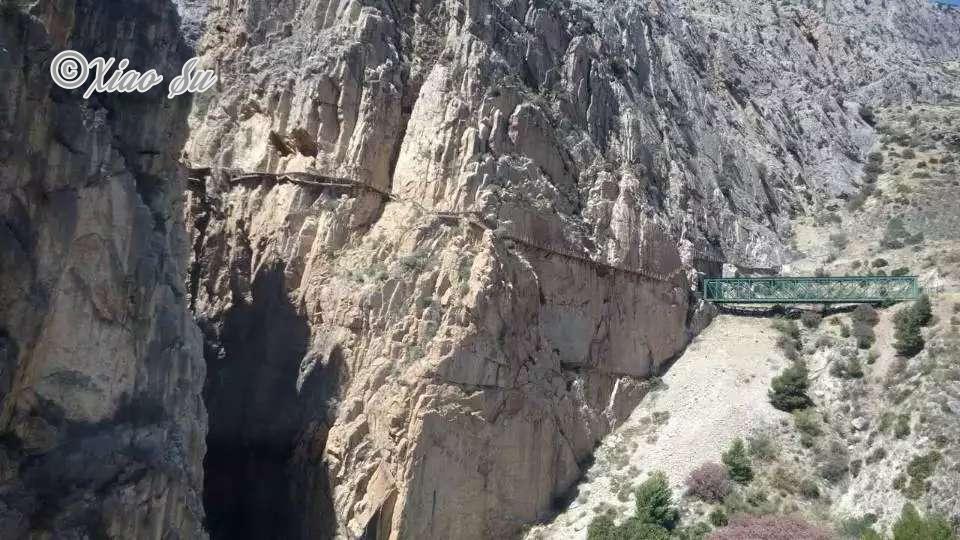 习惯了每次旅游都要安排几天徒步,可是这次假期太短,没能安排太多,但是有一条路线我是绝对不会错过的那就是caminito del rey中文应该翻译为国王之路。是一条全程3公里,以前是攀岩之路。因为天气和沙石结构加上钢结构的氧化锈损,这条路曾经是冒险者乐园,1999和2000年有4人身亡,所以2001政府将它关闭整修直到2015年3月重新开放。它整条路在100米高的陡涯是,旁边是2到200米宽的峡谷。有媒体甚至曾在未整修前称它为世界最危险的徒步路,当然这有点言过其实。但是可以想见他的惊险,整修后是条风景出彩的徒步路。现在秋冬还经常关闭,不要以为好天气的夏天就一定能领略,有个大风,下雨都会不通知的关闭,西班牙人就是这么随性,当然也是为了安全,因为还时不时有滚石落下。而我就遇到了,都到了门口,被告知风力太大,有落石危险不让上,这还是我那么多次出门,唯一没实现的行程,本来作为一种经历也算了,因为旅途的魅力之一就是未知。可是西班牙人在这里的处理方式让人无语,不退款,可以在当年内换时间换人。亲我从他国来不是隔壁村哪那么多假期,而且去哪找有计划来西班牙还要对户外有兴趣不怕晒而且行程宽松能安排足够时间徒步的替换者。哎,热情的人有时也有点小小的不靠谱啊?