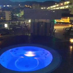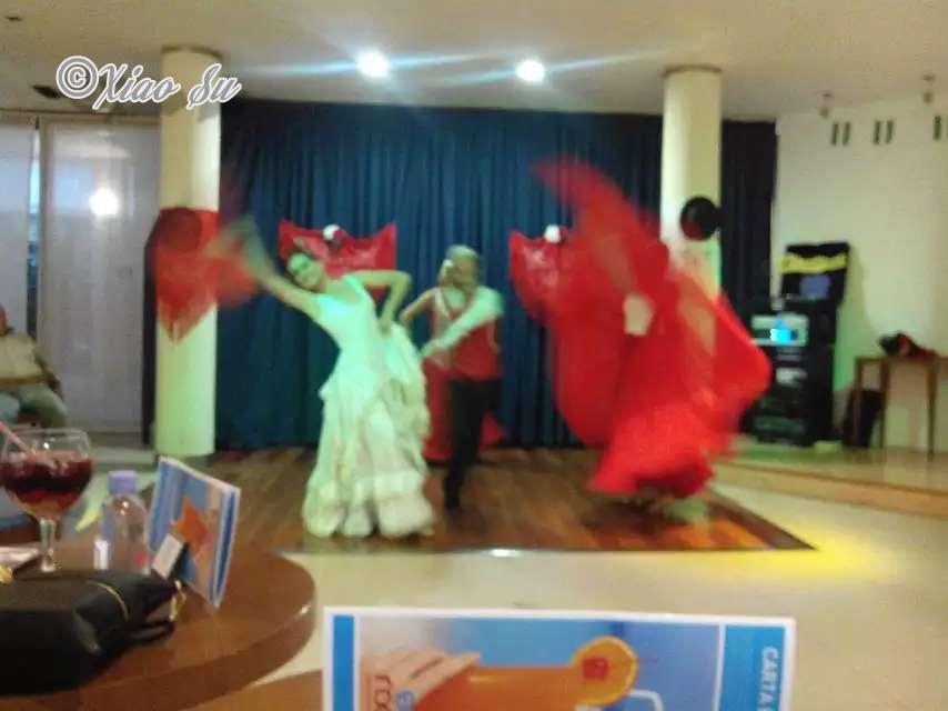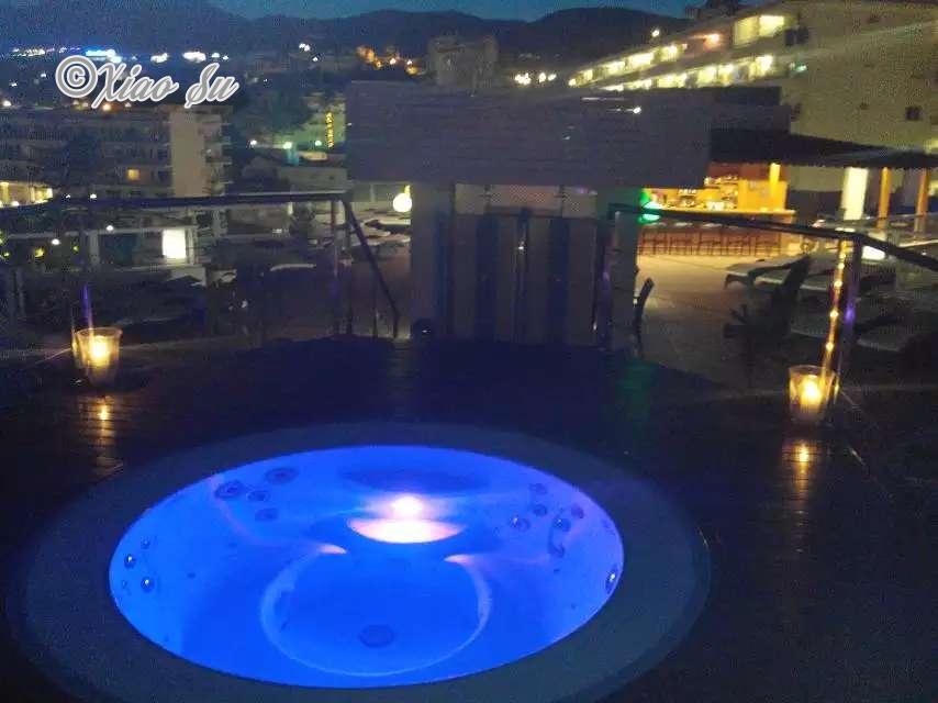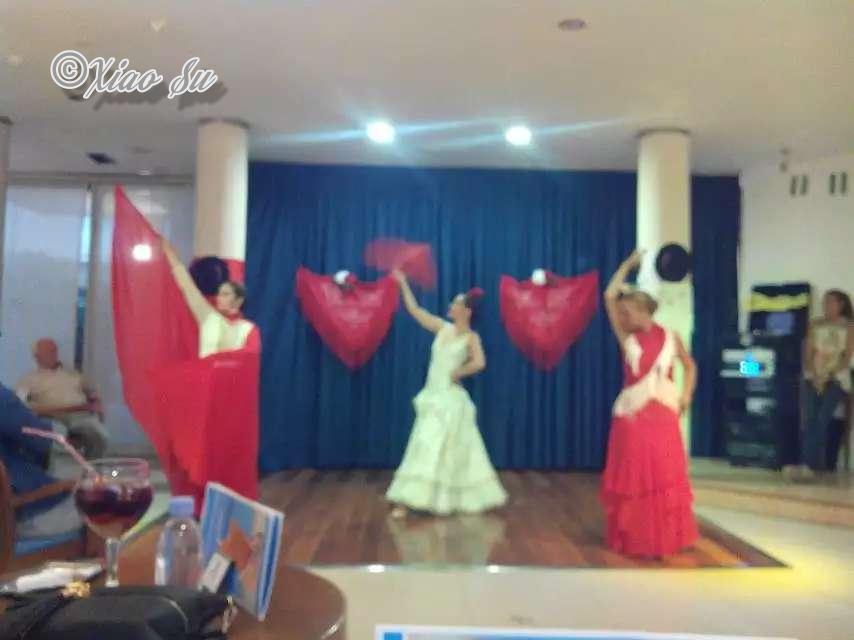 找到一张shuttle bus上拍的国王路一段可以感受下,回酒店正好晚饭后,酒店安排flamingo表扬,西班牙一般在度假区的星级酒店在晚上都会安排不同的表扬,大家娱乐一下,为了弥补我失落的心,登上酒店顶楼的在温水按摩池泡泡看看夜景,哎,酒店泳池为什么要修在酒吧边,无论白天黑夜总坐着老太老头。假期快结束了,回家咯