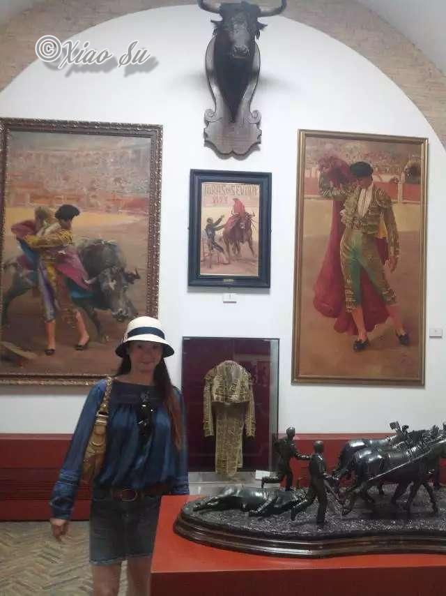 Sevilla的斗兽场是世界第二古老的,第一的在Honda之前去过了。但是它出名在于王子是它的评委。而那个牛头是仅有的三头表现出色只出赛一场就被王子保命的牛的标本,重半吨,寿终正寝。而整个斗牛分3段,要在20分钟内完成才能赢得荣誉。7月晚上有,正常要到9月。要赢得最高荣耀很难,最后一个已经是199几的事了