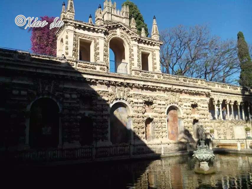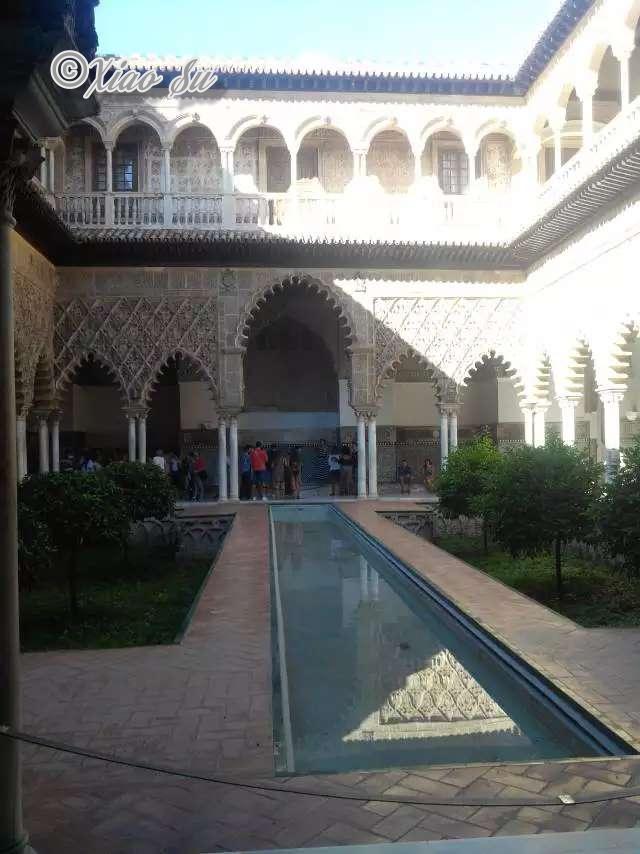出来之后,差不多17:30左右你就可以去第二重要的景点real Alcazar王宫门口排队了,小贴士4: 周一的下午18:00点开始皇宫免费,允许参观到19:30。排队一般要30分钟。当然你可以正常买票随时去10欧一人。 其他也很好有点Alhambra宫的味道,但是它建在地下的游泳池看了就心动,艳艳夏天外面快40度,整一个清凉能解说