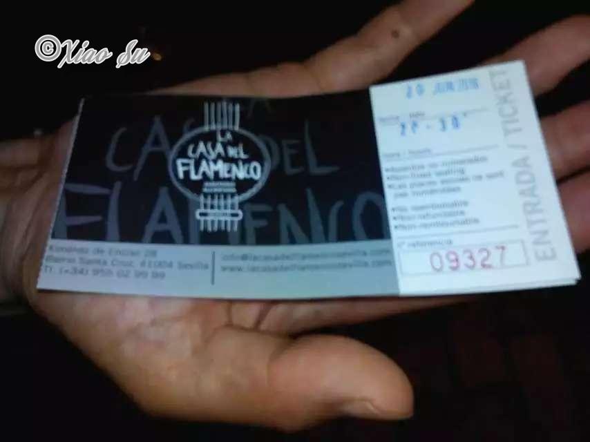 Sevilla的flamingo申请了世界文化遗产,到了被誉为flamingo发祥地的地方怎么能不看场表演,在皇宫不远有个口碑不错的show,网上有个很奇怪的付费方式我没用,让宾馆reception帮打电话预订的,它一天两场19:00和20:30分,我定的8点半的参观完皇宫正好8点取票。 表演前20分钟开始放入场,建议再早10分钟到可以挑个第一排的好位置。show当中不能拍照,但是结束会有一段专门的拍照show,我录了像可惜传不上给大家看,还是很专业的,18欧一个人,当然还有另外一个30欧的评价也很好带饮料。看完show喝个小啤酒吃个当地人的传统小吃炸小乌贼puntillitas fritos,然后逛逛夜景回宾馆。