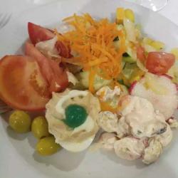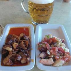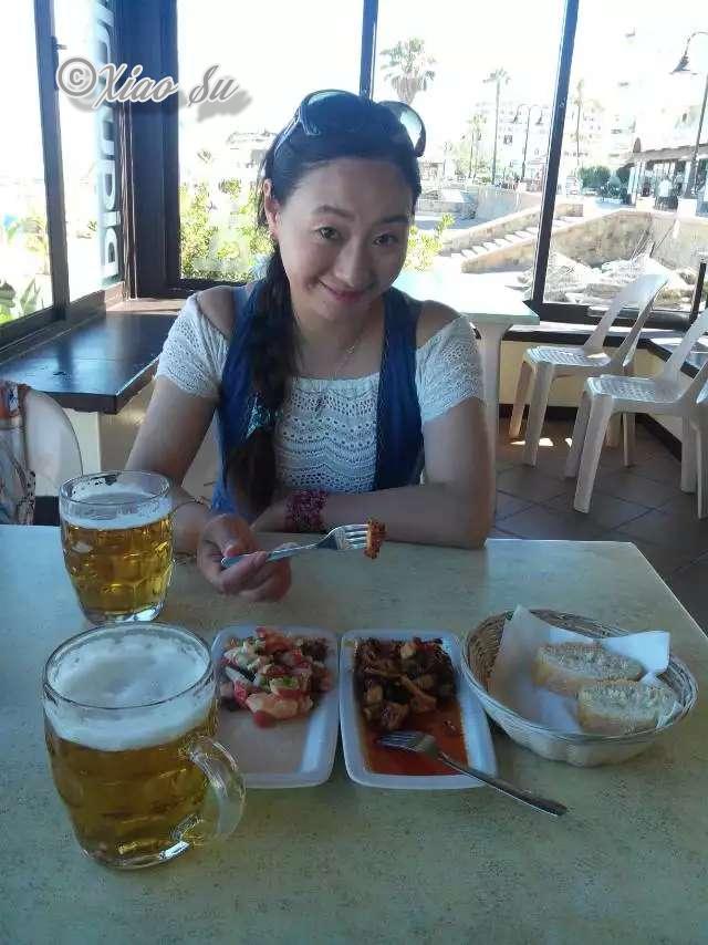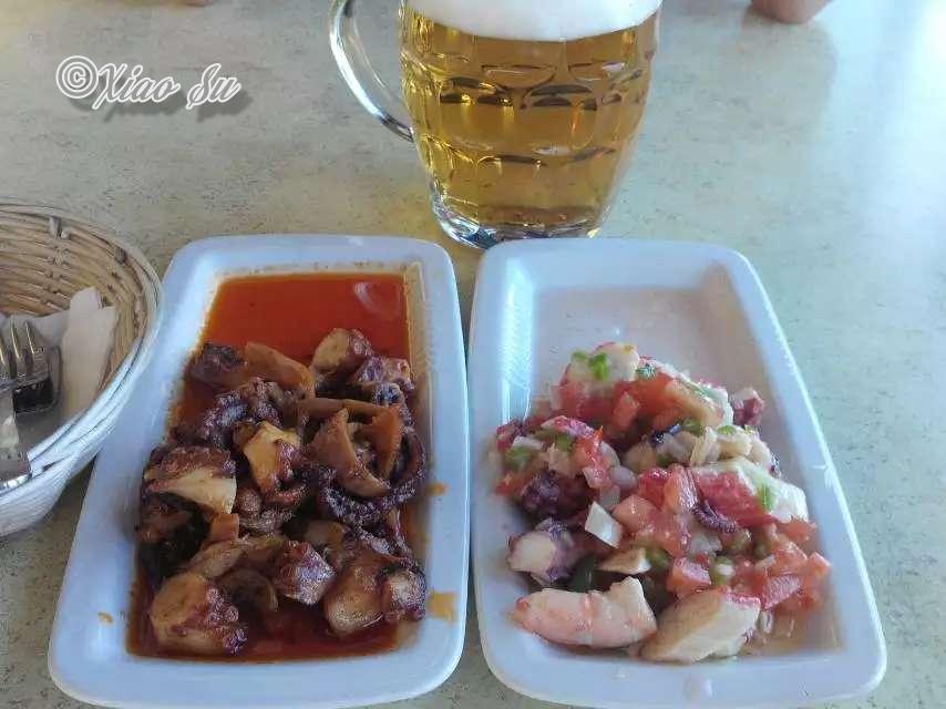 按照惯例最后总要在海边休整下,这个辣鱿鱼和海鲜沙拉配啤酒,午后最爽。