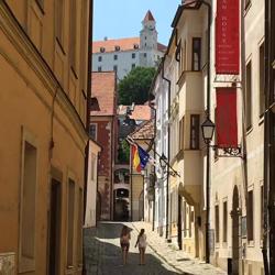 旅途继续如果时间充足从维也纳出发一个小时就能顺便把斯洛伐克首都Bratislava布拉提斯拉法作为一个一天的闲逛带过,它最重要的城堡并不是宣传那么大,而且是战后修复的堡里藏品不多很空,门票不便宜相对性价比不高。
