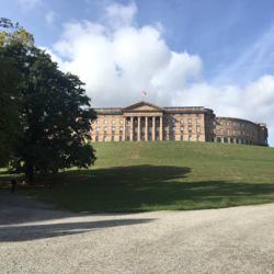 短途郊游选定Kassel,因为他的威廉高地公园Bergpark Wilhemshöhe 从2013年入选世界文化遗产。 他是欧洲最大的山间公园,也是世界第二大的建在山坡的公园, 占地2.4平方公里。 威廉丘山地公园開始建設於1696年,並且花了大約150年才完成,有500多种树种, 是欧洲最大的人工花园,包括大力神碑Herkules及沿阶而下的瀑布, 狮堡Löwenburg, 和夏宫威廉丘宫Schloss Wilhelmshöhe。 夏宫有解说差不多一个小时,门票4欧,如果要在内部拍照另付拍照费5欧。 我很喜欢他的浴室,和他仅存不多当时的木地板,他的图样和天花板是镜像效果的还有就是当时皇后的桌游很有意思。