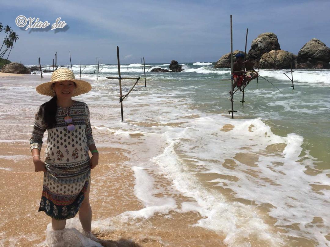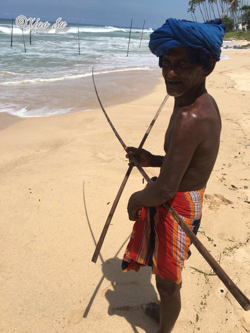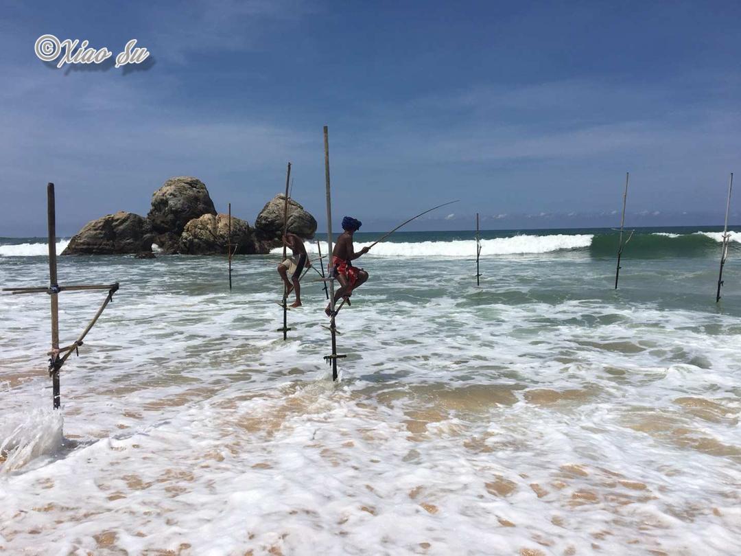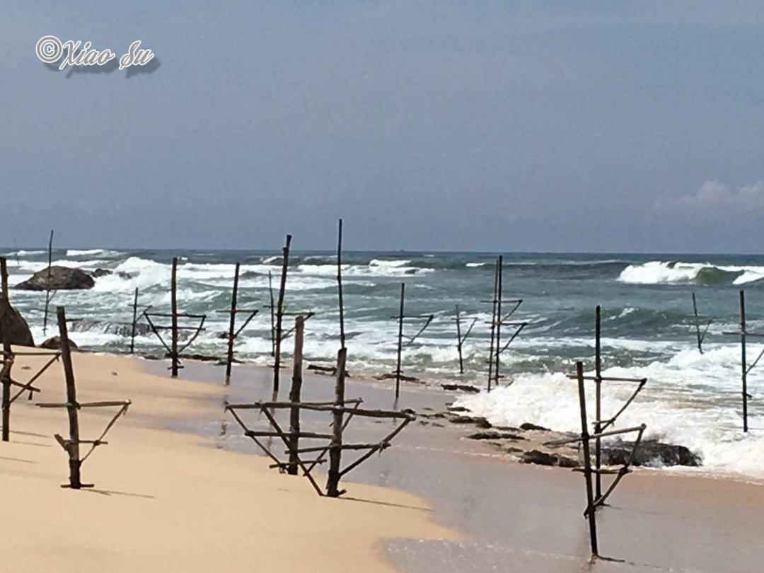 做一个赶海少女也是我这次行程的梦想,斯里兰卡著名的特色Ahangama的Stelzenfisch。出发前特意找了几个旅游节目,wonderschön就有一集介绍sri Lanka上面说随着旅游的发展。这种特殊的钓鱼和从事这项工作的当地渔民,不在把它作为给家里人的福利,而是有偿拍照更像职业了,商业气息的浓郁让我觉得很可惜。而且书上和节目都说是100rs,可是如今的价格已经是500rs,开价其实是1000rs了,在斯里兰卡会还价也是基本技能,可惜我这种技能值为零的人,只希望别和大多数人差别太大,但是这片海这片沙滩绝对是斯里兰卡少有的干净细致和纯净,值得推荐在附近找个hotel或是特色名宿留宿几天。