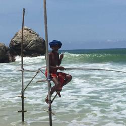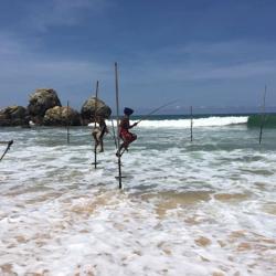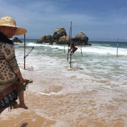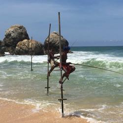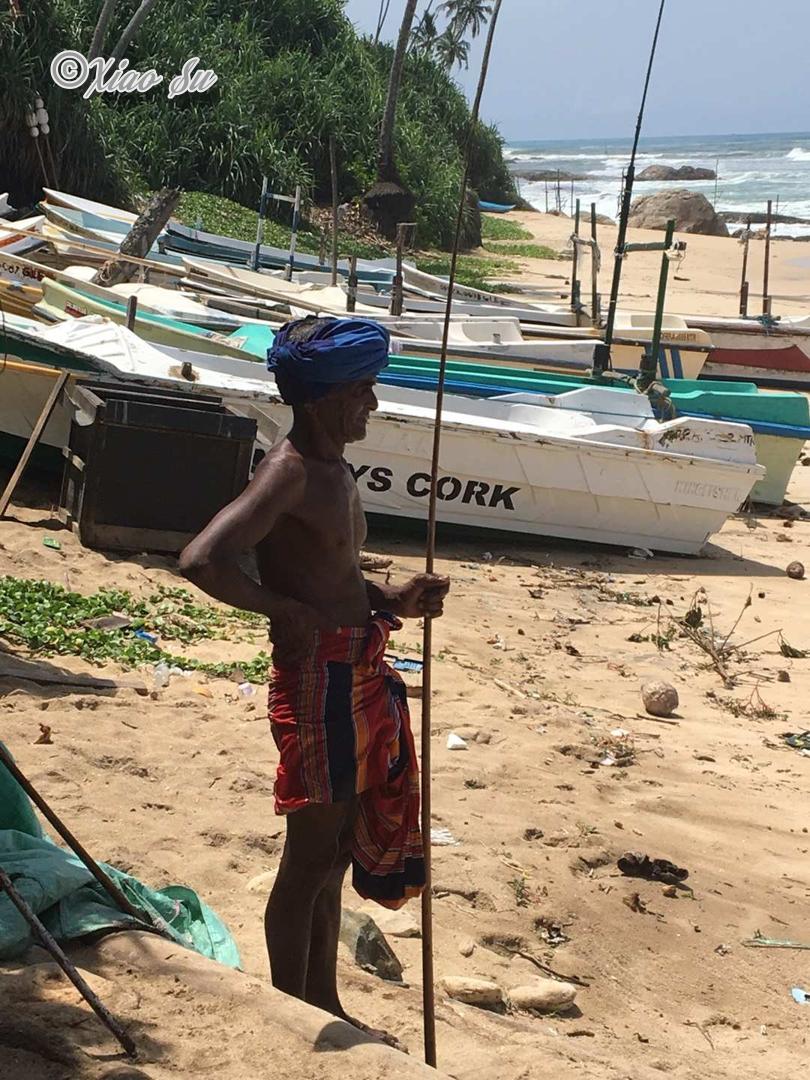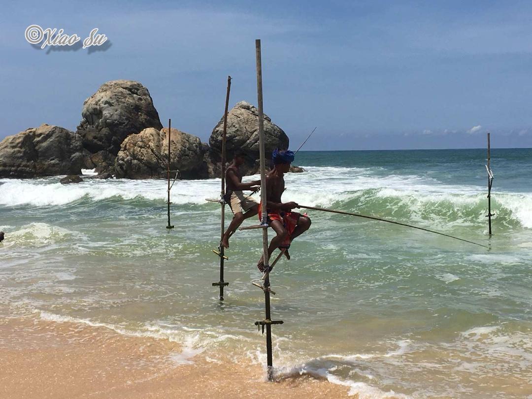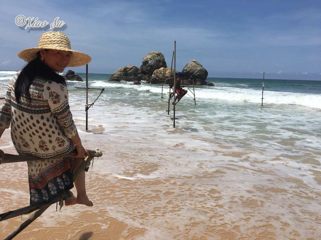 做一个赶海少女也是我这次行程的梦想,斯里兰卡著名的特色Ahangama的Stelzenfisch。出发前特意找了几个旅游节目,wonderschön就有一集介绍sri Lanka上面说随着旅游的发展。这种特殊的钓鱼和从事这项工作的当地渔民,不在把它作为给家里人的福利,而是有偿拍照更像职业了,商业气息的浓郁让我觉得很可惜。而且书上和节目都说是100rs,可是如今的价格已经是500rs,开价其实是1000rs了,在斯里兰卡会还价也是基本技能,可惜我这种技能值为零的人,只希望别和大多数人差别太大,但是这片海这片沙滩绝对是斯里兰卡少有的干净细致和纯净,值得推荐在附近找个hotel或是特色名宿留宿几天。