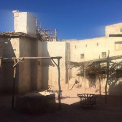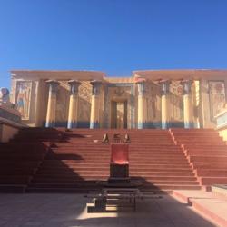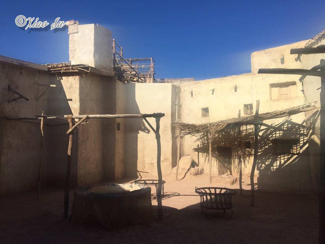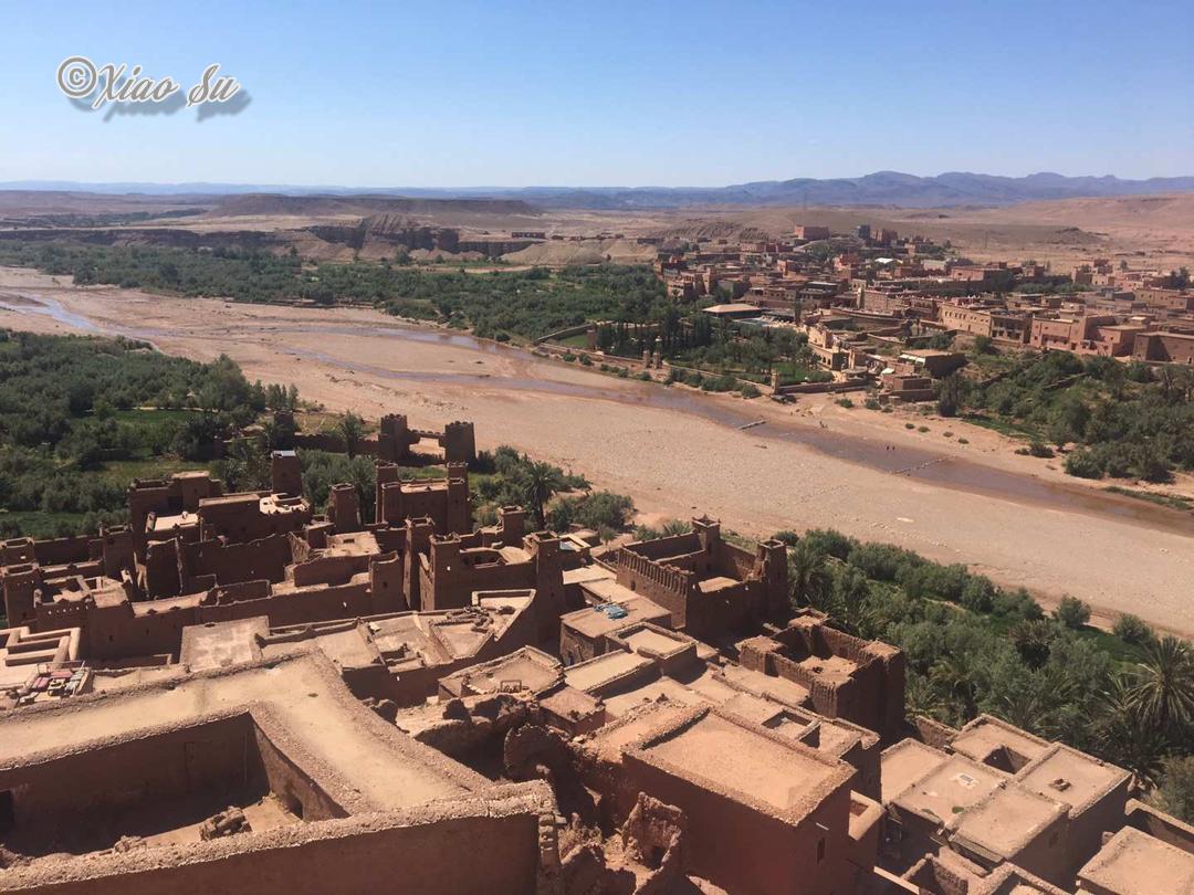 Ouarzazate是摩洛哥著名的影视基地城,很多好莱坞大片在这里搭布景拍摄,其实都是塑料,竹片,泥砖搭的。看过之后深深感叹好莱坞后期制作的强大。说句实话它们的影视基地设施投入真心远不如中国,我记得20年前参观中国的影视基地唐城,宋城可比这气势恢弘大手笔多了。可是这一点也不影响出片效果。比如下面有拍摄埃及艳后的场景, 对比下电影, 你也会发出感叹