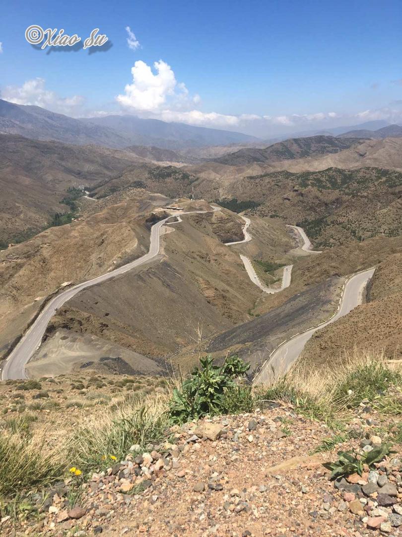 从红土城Kasbah到Marrakesch必经之路是一条大裂谷,道路崎岖,但也形成了一个著名的拍照地,当地人叫蛇弯。其实这一段虽然很多大弯,但是3年前新修的公路是整齐的2车道,路况好,并不可怕,据说旧路是真正的贴着山边的盘山路,很多游客以前经过不敢睁眼看,之前的一段就比它还险峻。不过这里因为是摩洛哥最高公路亚特拉斯山群的提津卡Tichka,山城海拔2260米。所以气势还是有的。