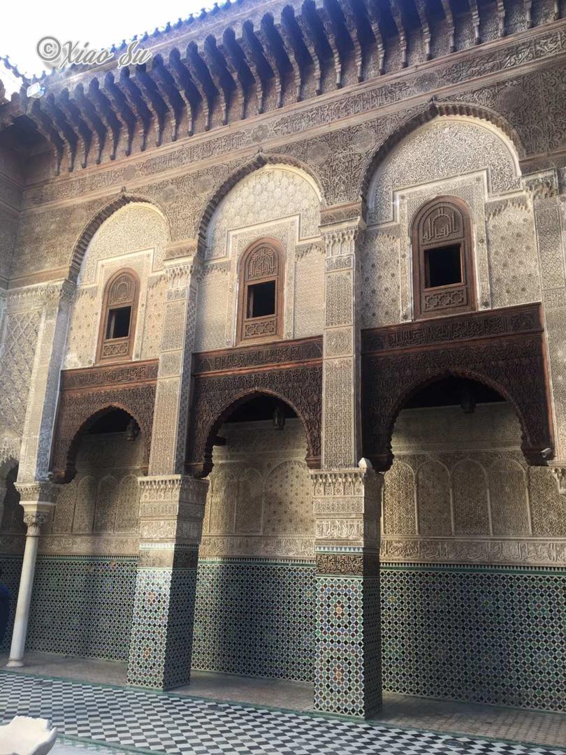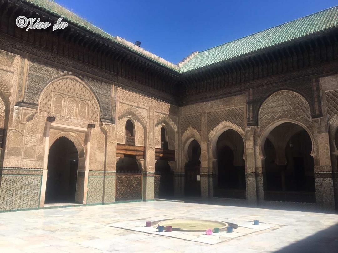 Fes的第一站是可兰经学院Madrasa Bu Inaniya von Fes,门票20MAD,只能看个院子,里面不开放参观。之后会介绍还有一所,如果时间有限可以参观后面的那所开放全部的