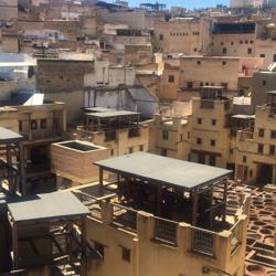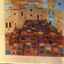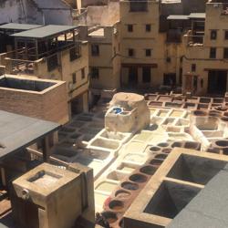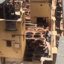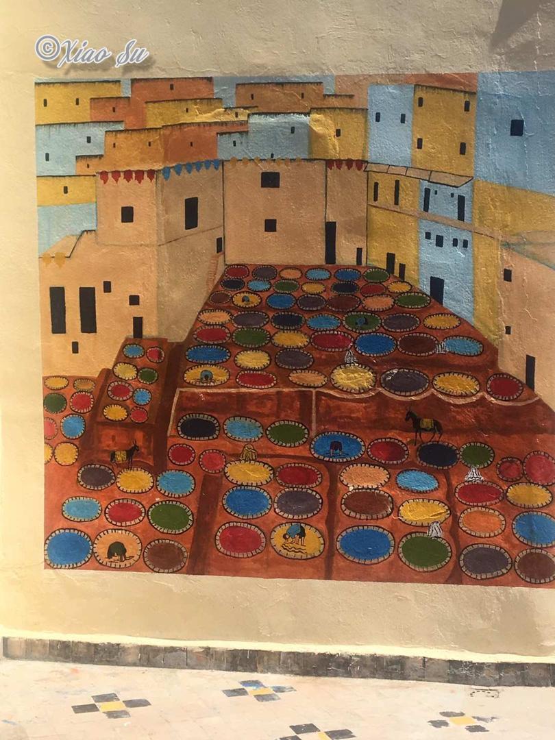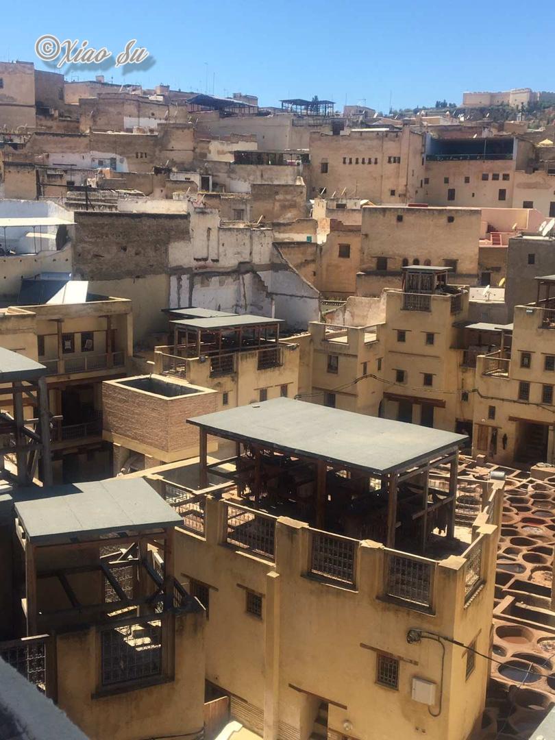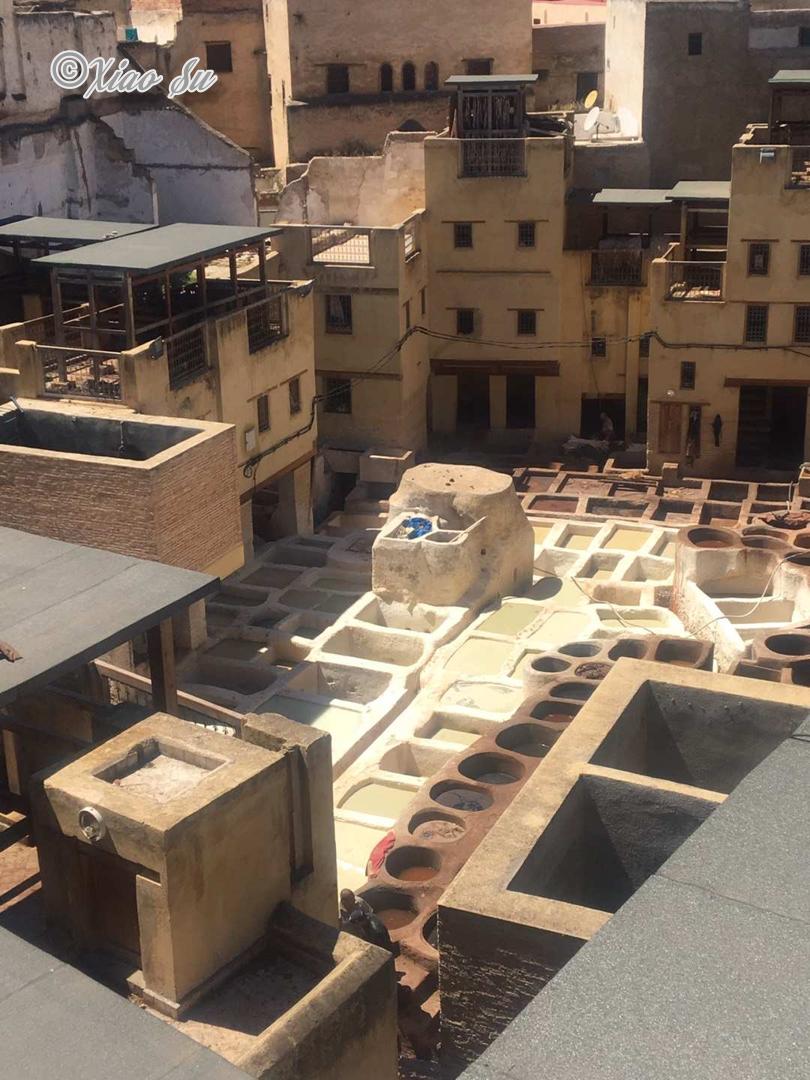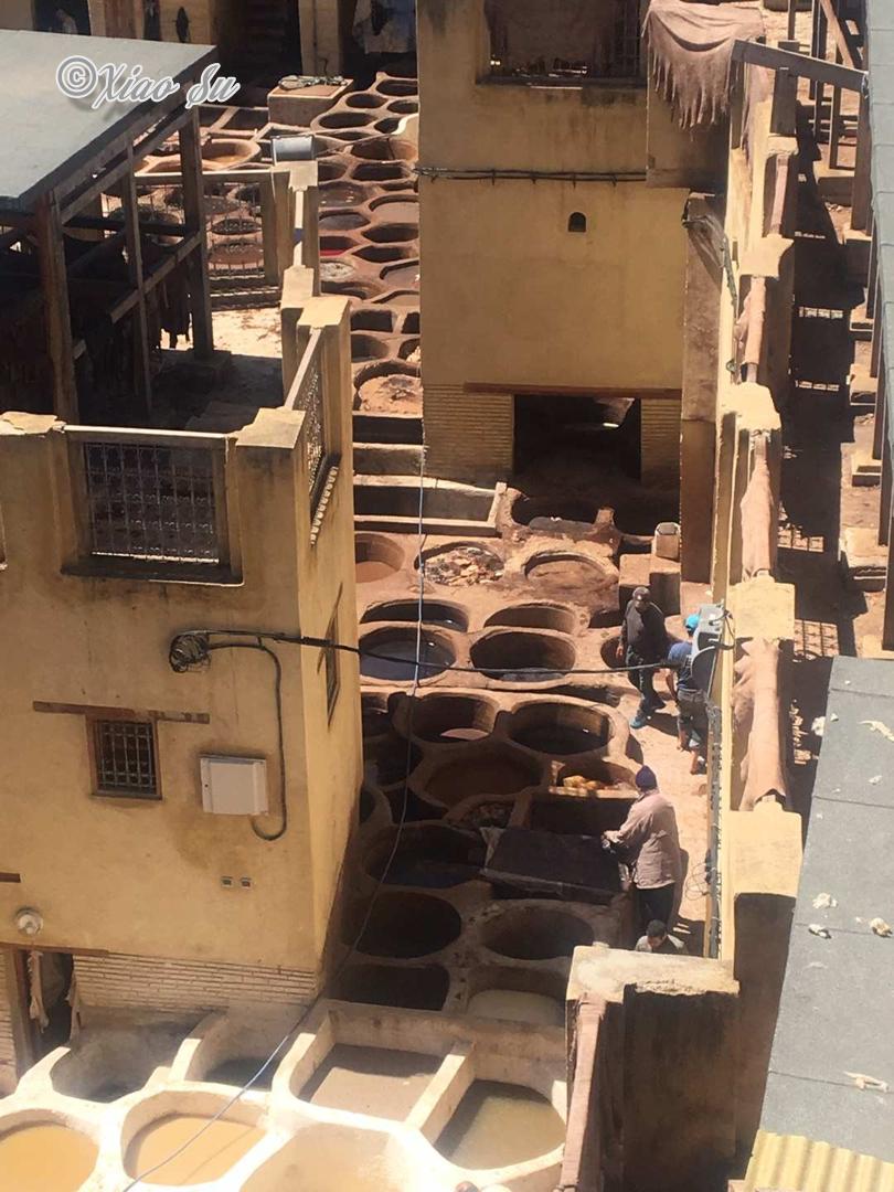 神秘的走街卖水人,在marrakesch老市场没遇到竟然巧遇在Fes老城。著名的Chouara Tannery就是洗皮工坊,据说起源于11世纪,目前还有150多个家庭以此为生。夏天太热,他们从早上6点开始工作到下午两点休息,冬天工作全天,站在天台上还能闻到很明显的尿素味
