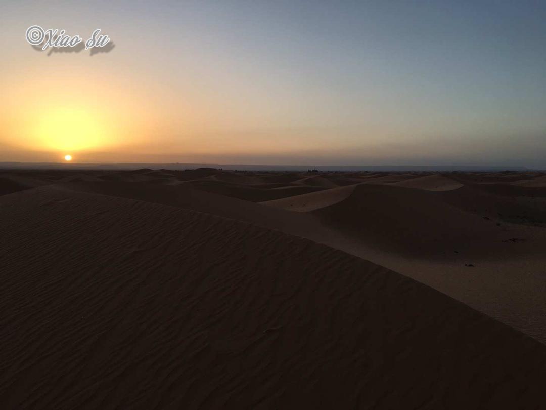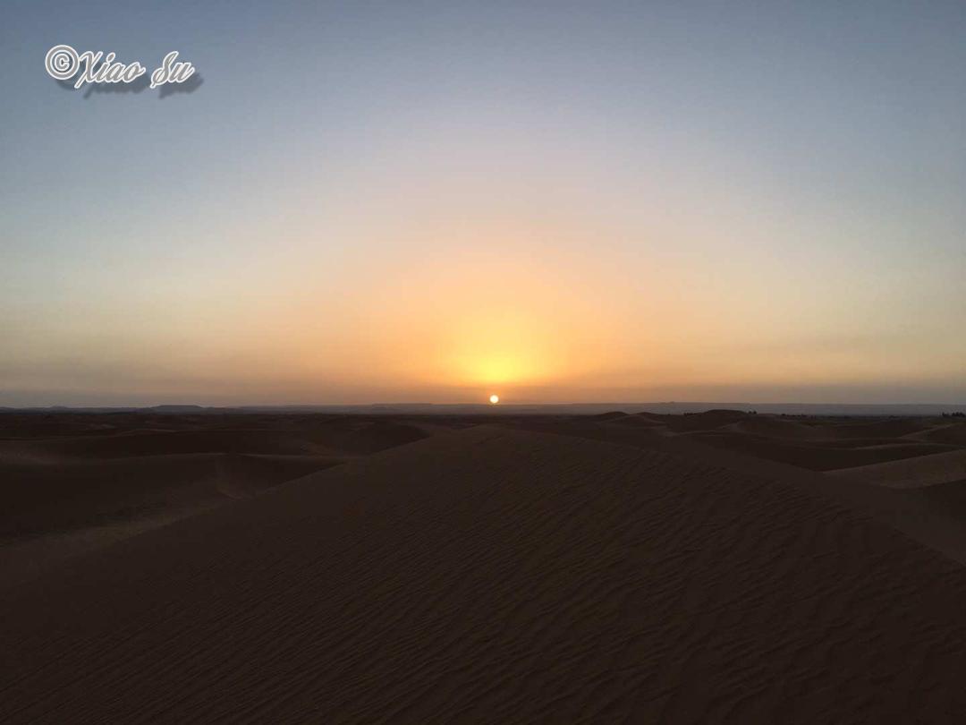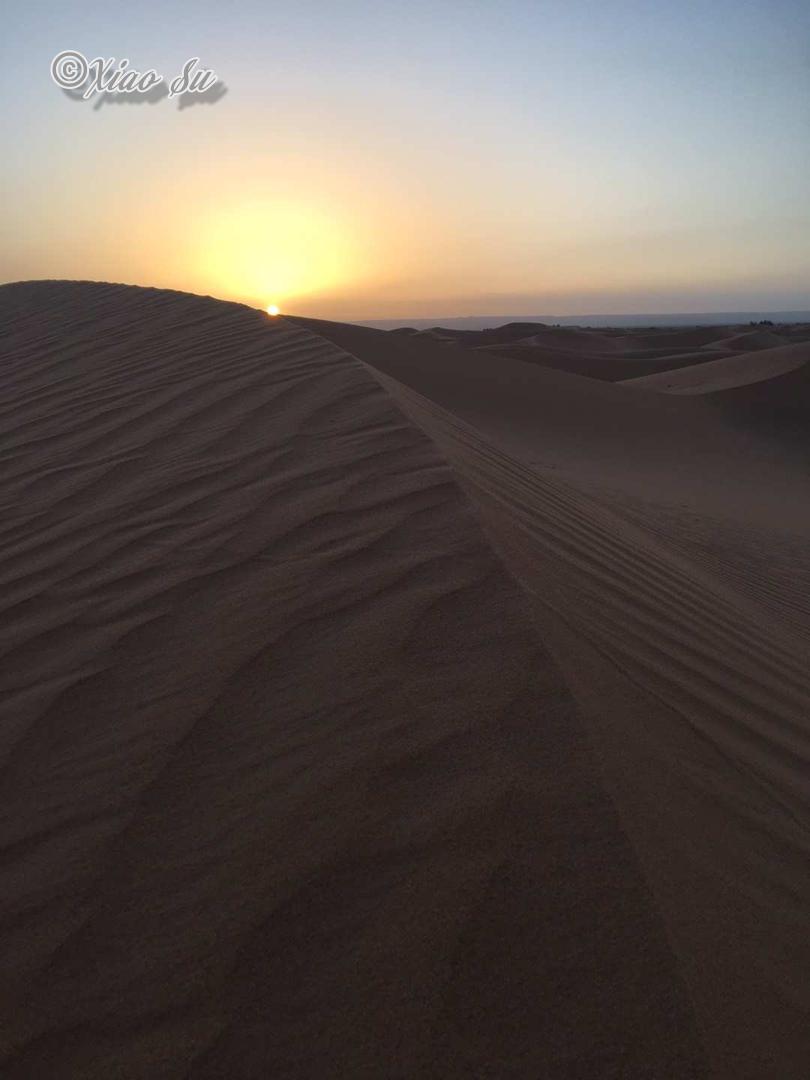 凌晨6点起,沙漠日出6点半,风平静后,沙漠是如此宁静致远,看多了海上日出,看到沙漠日出,想到的却是大漠孤烟直,长河落日圆。