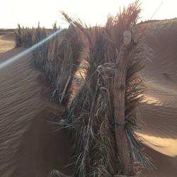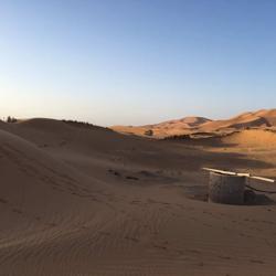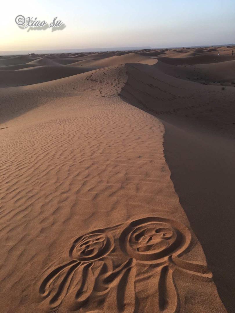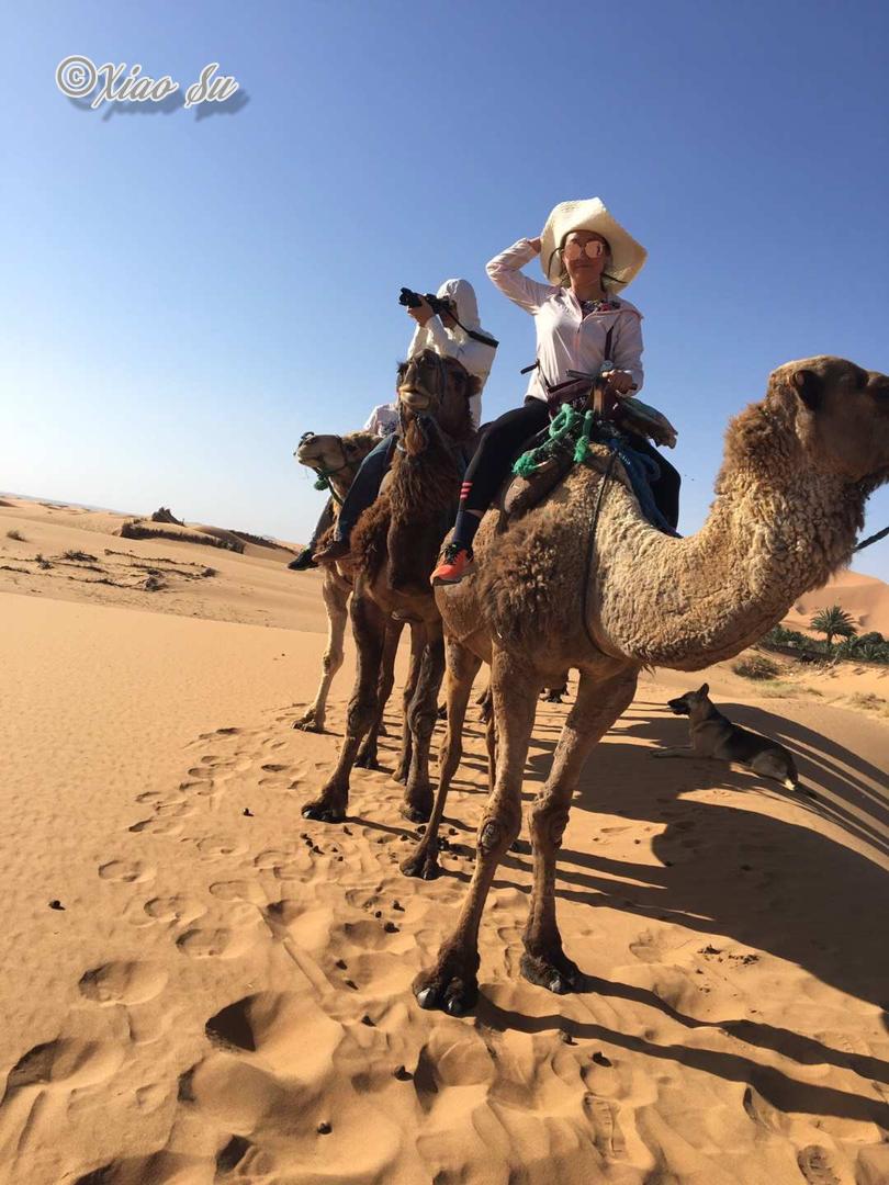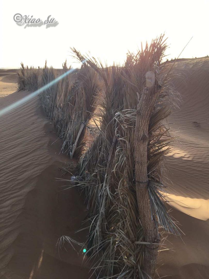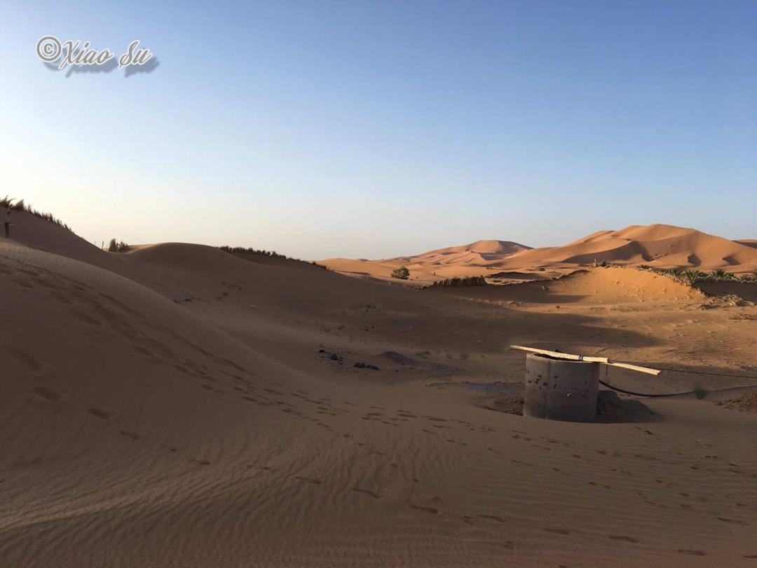 我到底拍了多少各个角度的沙漠日出,自己也不知道,突然感觉自己更能明白撒阿拉沙漠的传奇女作家-三毛的感情了。风过留下了沙浪,当地人用茅草扎成防风墙,水井其实也就10多米就出水了,要骑着骆驼离开了,再见撒哈拉。而这仅仅只是深入沙漠5公里的地方还有人烟,不敢想独自深入大沙漠的勇气。 要入沙漠自驾必须4躯越野车,看到被埋在沙堆里的私家车,不过最好不要单独行动,沙漠的危险是难以预测的。