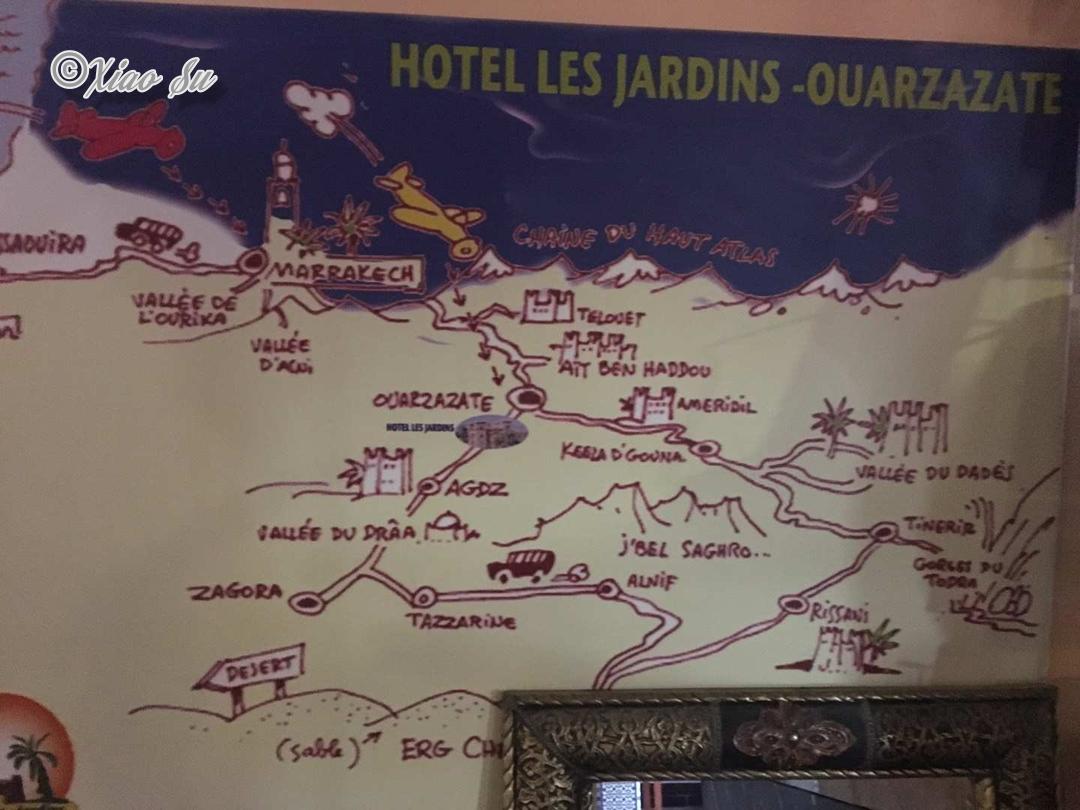 休息吃饭在山谷里的餐厅,终于出沙漠又有网了,就把昨天,今天见闻一起发发。路上和司机聊天,解释一个实用信息,摩洛哥的Gasthaus也就是民宿分两大类,我住的多是Riad指的是阿拉伯传统民居,一大特色是必须有中庭,有马赛克装饰,很多中庭有水池,带小院。 还有一大类常见的叫Auberge就是最简单的出租房间,一般房子比较简单不带庭院