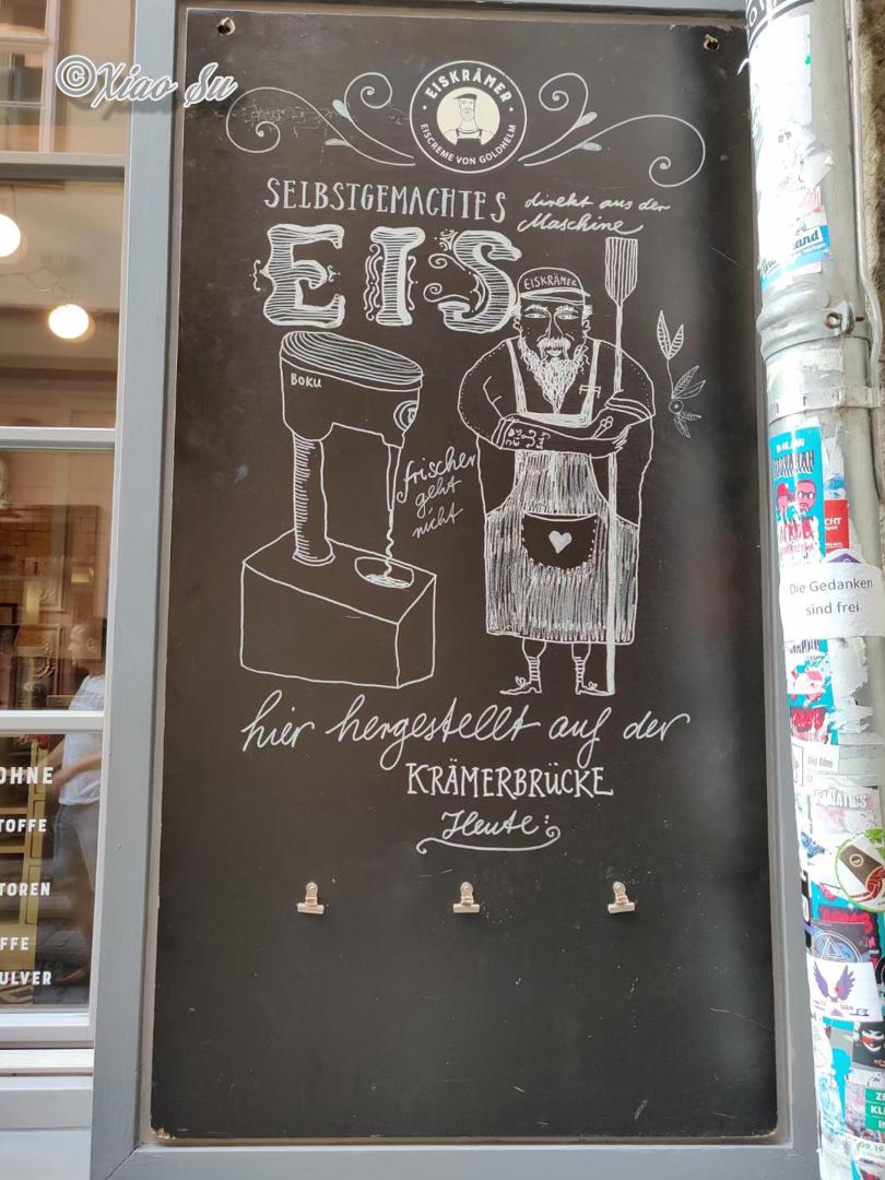 整个Erfurt最受游人喜欢的点是长120米的架在河上老房子和特色小店组成的Krämerbrücke.而整个小街我最爱的就是这家纯手工机械木偶店,和店主聊了会天,门口橱窗巨大的白雪公主八音盒木偶都是他自己设计,自己制作,历时一年半。值得尊敬。