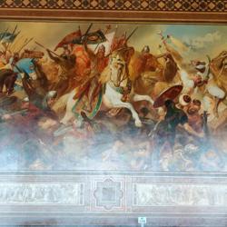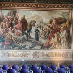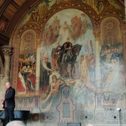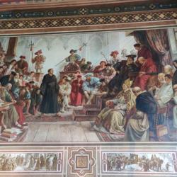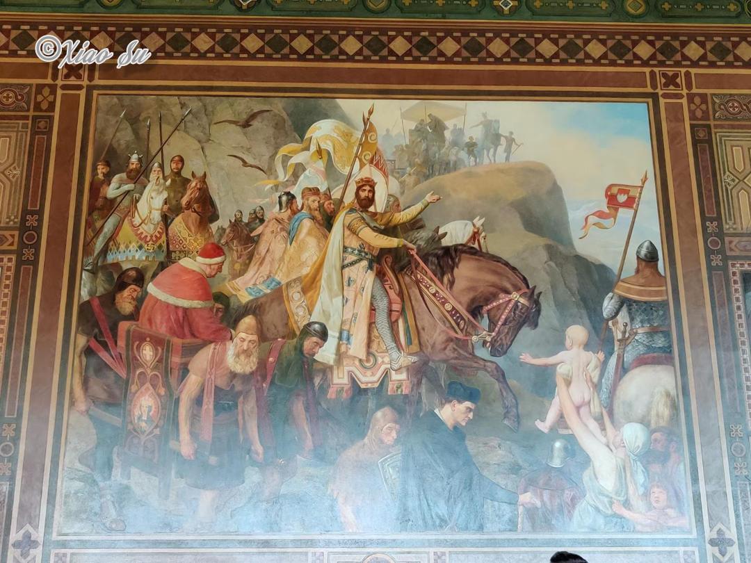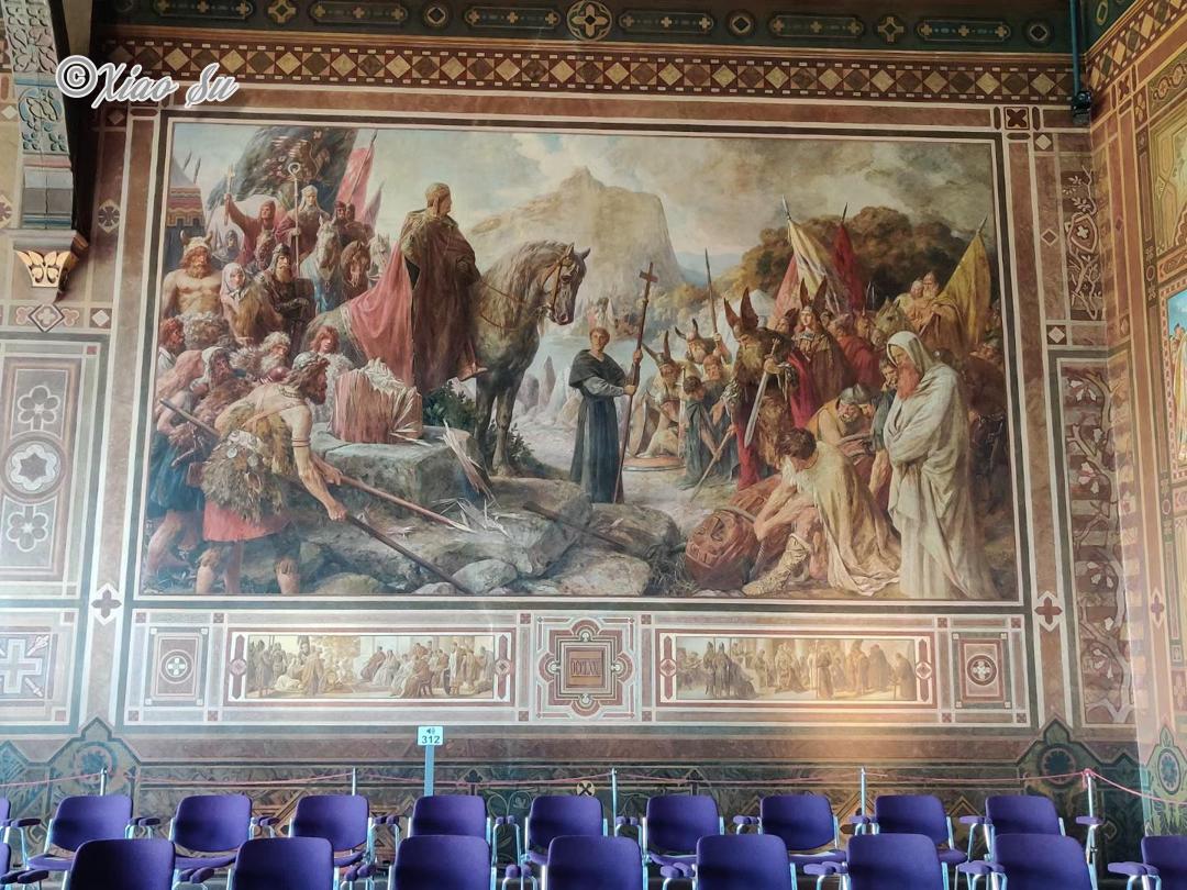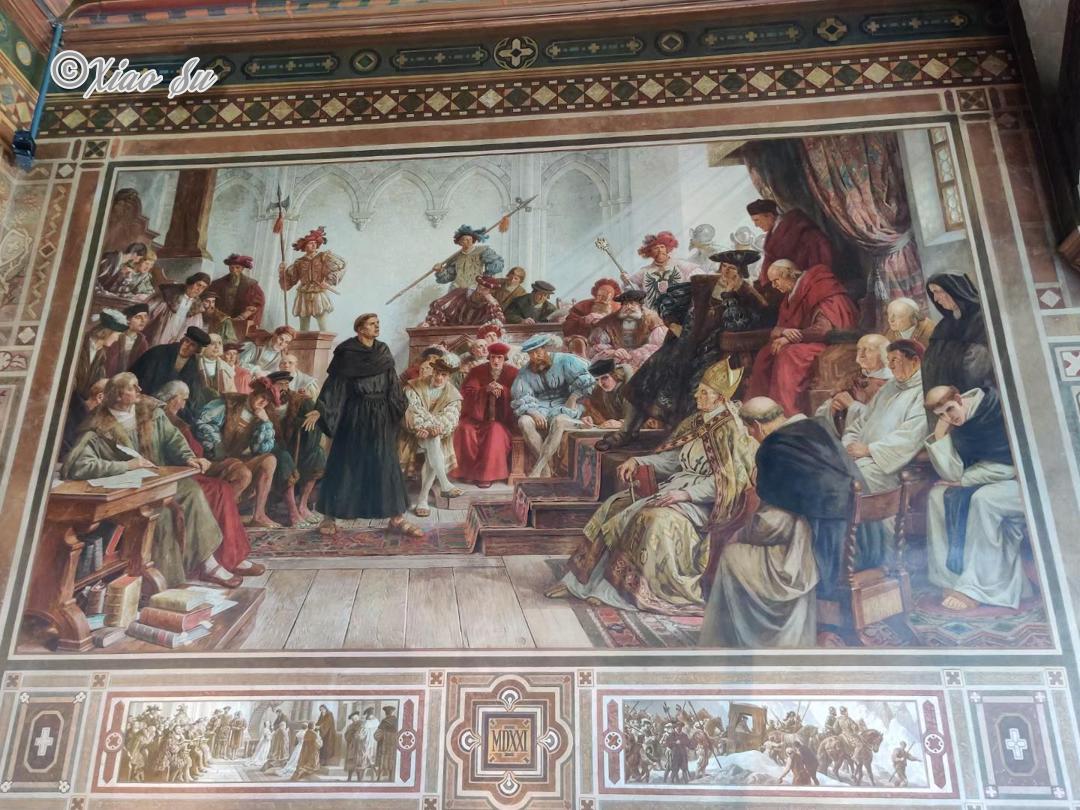 世界文化遗产Rammelsberg是和它的老城Groslar是一体的,以人,人文和生产为主题。那个年代有矿山当然就有大量工作,而地区也算富裕繁华。听讲解才知道,和想象的不一样,除了煤矿,这种金属矿的工人在中世纪算健康的而且收入算不错的。所以Kaiserpfalz Goslar也在当时1040到1050由Heinrich3世建立,之后的200年都是德国乃至欧洲罗马皇帝巡视是重要的宫廷会议和帝国集会点。Kaisersaal的绘画是一个教授带着他的儿子和两个学生历时18载完成的,可以说是毕生事业了。它的票价是6欧,每天的11点,13点和15点包括在票价里有一个半小时的人工讲解,包括历史和绘画故事含义,很有意思就是要自己计算下时间,剩下的时间当然可以自己借Audioguide。我个人觉得人工讲解带着个人感情色彩抑扬顿挫有心中的自豪感,听着很有意思也长知识。一楼还有Wintersaal是带地暖的冬天用的集会厅,现在做展厅。在那个年代能达到15,16度。已经是奢侈了。