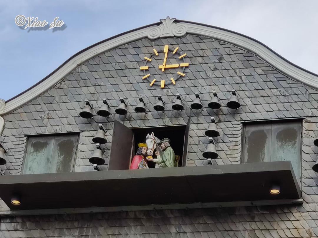 Goslar老城2, 在老广场的Cafe am Markt吃饭,味道比我期待的要好,不是随便糊弄游客的。 恰逢整点还能看机械钟,长达5分钟,会有整个Bergbau矿工生活记实。